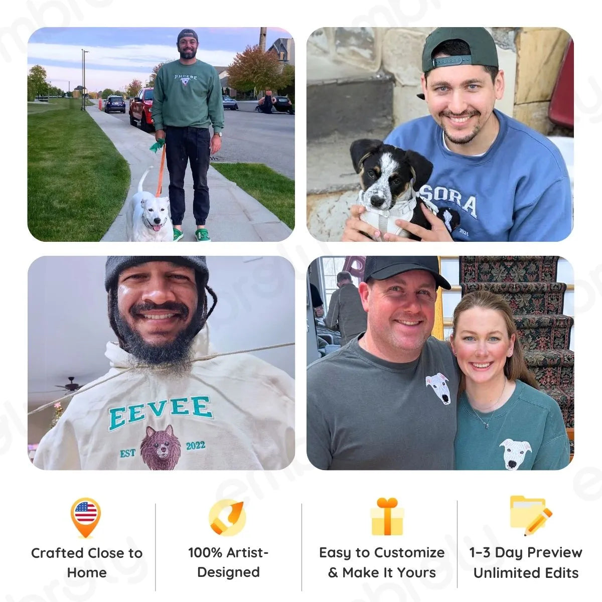 Designed for the stylish dog dad, this sweatshirt boasts comfort and flair. The high-quality embroidery vividly captures your dog's likeness, making it a head-turning piece in your wardrobe. It's more than just apparel; it's a conversation starter that says, "Yes, I'm that devoted dog daddy!"